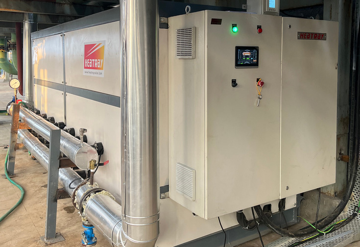 Solenis required an energy-efficient way to preheat boiler feedwater and reduce PNG use. HeatRay installed a W2W heat pump system (52 kW total) utilizing cooling-tower return water (25–31 °C) as a renewable heat source, delivering 80 °C hot water 24×7 via a 500 L automated buffer tank.